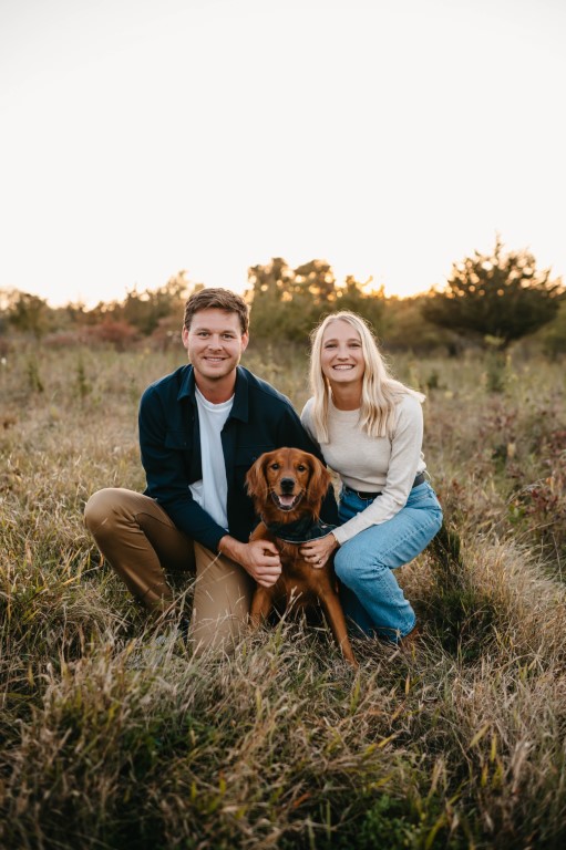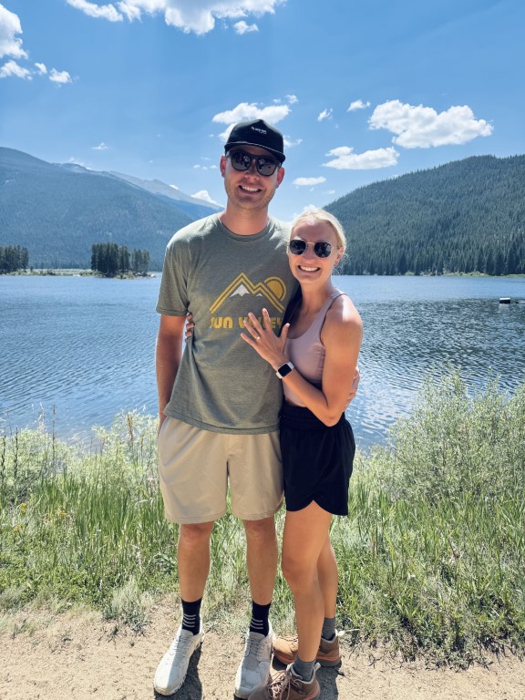 Many weekends spent at the Enos family cabin and trips to Colorado to see the Noser family later... Claire moved in with Mitch (and Miles). July 2025 came around and Mitch popped the big question to Claire on a hike in the mountains of Grandby, Colorado. Claire's family was waiting afterwards behind the bushes at the trailhead for an added surprise.